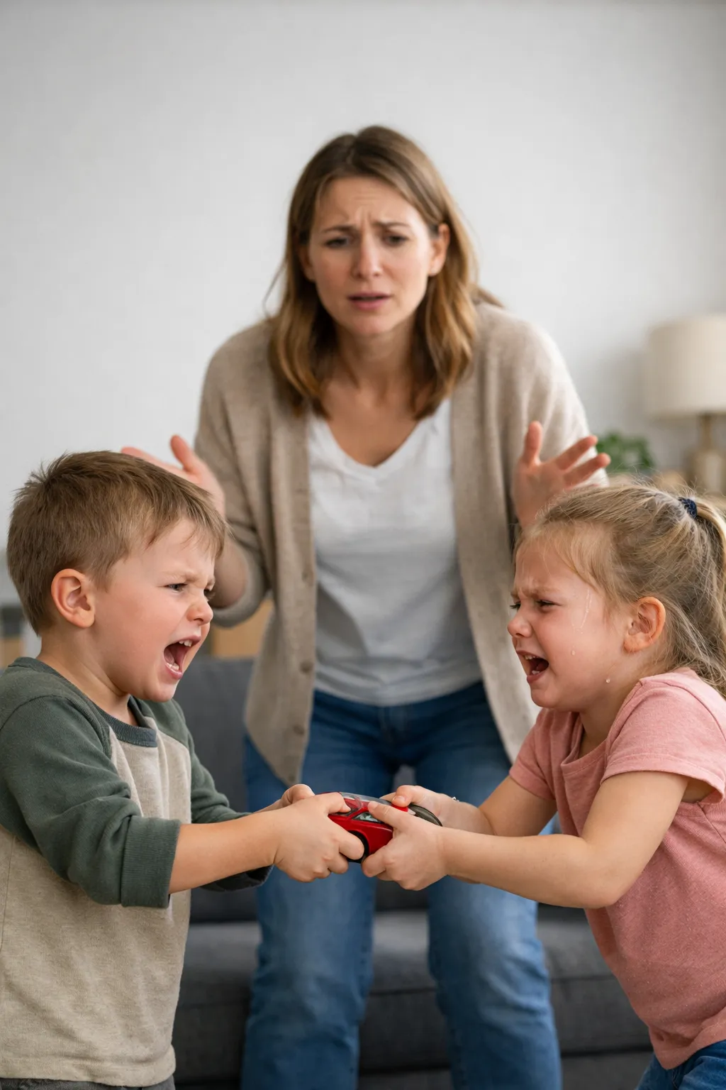 Du immer wieder eingreifen musst, weil deine Kinder sich in die Haare kriegen. Am Ende verlierst du oft selbst die Nerven.