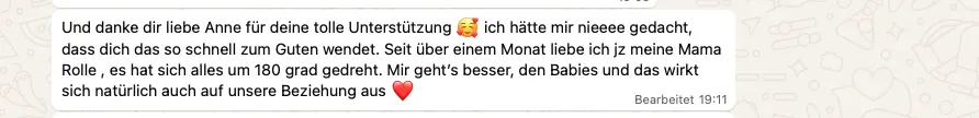 Zusätzlich gibt es eine Austauschgruppe (WhatsApp) und du kannst mir jederzeit deine Fragen stellen, auf die du individuelle Lösungen bekommst.