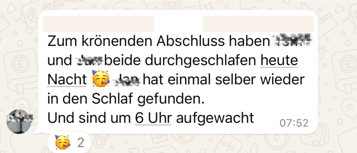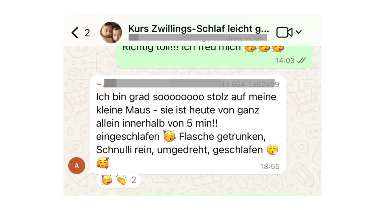 Du bist im direkten Kontakt zu mir persönlich und wir finden jede Woche Lösungen, die genau auf eure Zwillings-Schlafsituationen zugeschnitten sind.