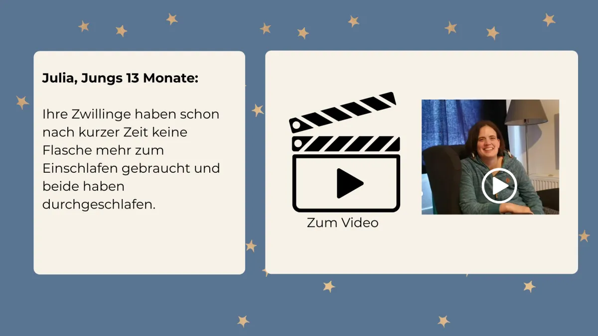 Du lernst in diesem individuell begleitenden 8 Wochen-Onlinekurs, wie deine Zwillinge ohne doppelte Einschlaf-Dramen friedlich ein- und durchschlafen.